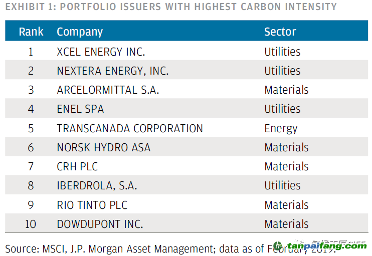 圖1 投資組合中排放足跡最高的十家企業(yè)