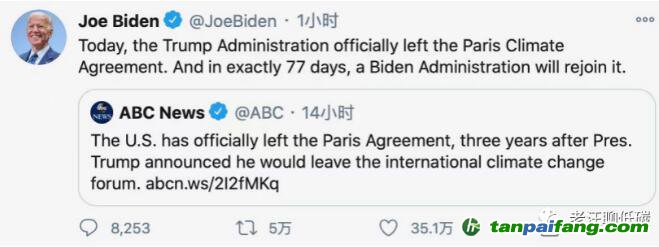 當然,特朗普的這一番騷操作,完全不符合作為世界警察、人類燈塔的美國人設,所以拜登宣布上臺后的首要任務就是重返巴黎協(xié)定。這樣,在應對氣候變化上,全球人民又擰成了一股繩。
