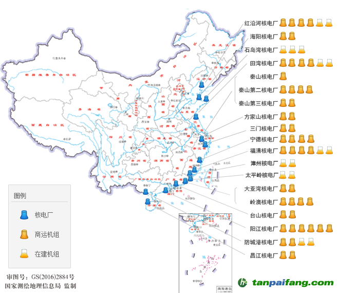 //國(guó)家核安全局中國(guó)大陸核電廠分布圖(截至2020年4月27日)