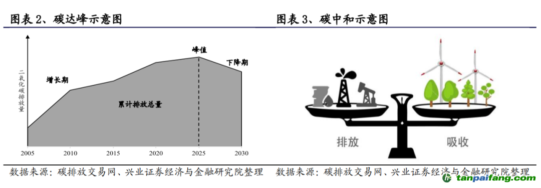 碳達(dá)峰是實(shí)現(xiàn)碳中和的前提條件,盡早地實(shí)現(xiàn)碳達(dá)峰可促進(jìn)碳中和的早日實(shí)現(xiàn)。據(jù)此,結(jié)合我國(guó)的承諾的時(shí)間節(jié)點(diǎn):1)從現(xiàn)在至 2030 年,我國(guó)的碳排放仍將處于一個(gè)爬坡期;2)2030-2060 年這 20 年間,碳排放要渡過(guò)平臺(tái)期并最終完成減排任務(wù)。 本*文`內(nèi)/容/來(lái)/自:中-國(guó)-碳^排-放“交|易^網(wǎng)-tan pai fang . c o m