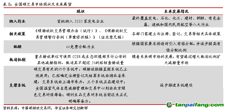 ? 納入行業(yè)由電力行業(yè)逐步拓展至所有高排放行業(yè)。根據(jù)生態(tài)環(huán)境部于2021年1月發(fā)布的《碳排放權(quán)交易管理辦法(試行)》,全國碳市場交易首批僅納入2225家發(fā)電行業(yè),在未來我國碳市場建設(shè)逐漸成熟的情況下,將最終覆蓋發(fā)電、石化、化工、建材、鋼鐵、有色金屬、造紙和國內(nèi)民用航空等八大行業(yè)。 本文+內(nèi)-容-來-自;中^國_碳+排.放_交^易=網(wǎng) t a n pa ifa ng .c om