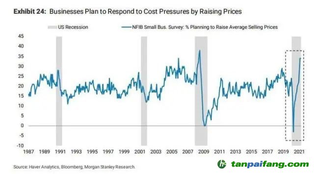 美國(guó)中小型企業(yè)漲價(jià)計(jì)劃的調(diào)查指數(shù),飆升至接近歷史高位的水平 本`文@內(nèi)-容-來-自;中^國(guó)_碳0排0放^交-易=網(wǎng) ta n pa i fa ng . co m