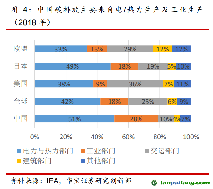 電熱力生產(chǎn)及工業(yè)集中用煤、交通領域大量耗油是導致中國碳排放量較大的主因。根據(jù)英國BP的2019年數(shù)據(jù),中國93%的碳排放來自于化石燃料的使用,其中68% 來自于固體燃料如煤炭,23%來自于液體燃料如石油等,9%來自于氣體燃料如天然氣等。 本%文$內(nèi)-容-來-自;中_國_碳|排 放_交-易^網(wǎng)^t an pa i fang . c om