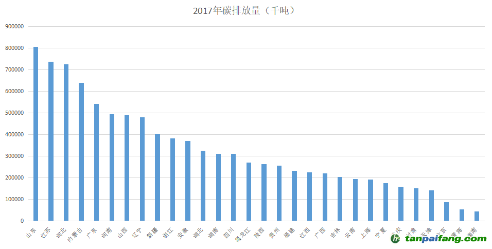 中國(guó)的經(jīng)濟(jì)結(jié)構(gòu)北重南輕,像能源、機(jī)械、冶金這些行業(yè),大部分集中在北方,所以帶來(lái)了大量能源的消耗和二氧化碳的排放。另一方面,淮河以北存在冬季供暖的壓力,這在南方是不存在的。所以碳排放排名第一的山東排放量是海南的近二十倍。