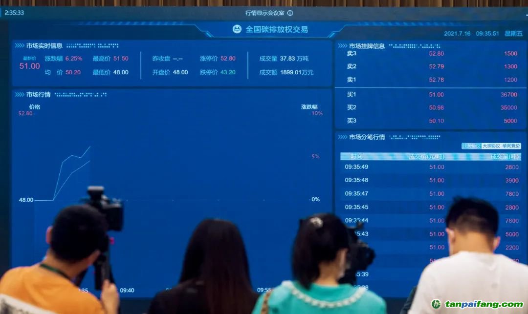7月16日,武漢的全國碳排放權(quán)交易實(shí)時信息畫面。當(dāng)日,全國碳排放權(quán)交易市場上線交易啟動儀式以視頻連線形式舉行,在北京設(shè)主會場,在上海和湖北設(shè)分會場。圖/新華 內(nèi)-容-來-自;中_國_碳_0排放¥交-易=網(wǎng) t an pa i fa ng . c om