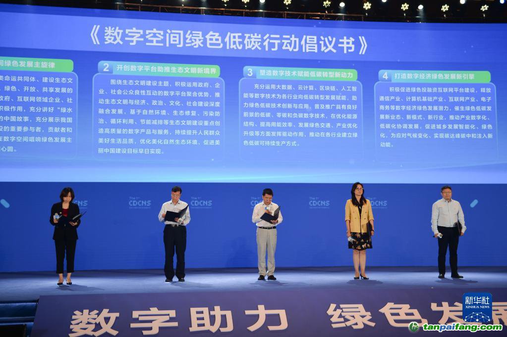 9月7日,機構(gòu)企業(yè)代表共同發(fā)布《數(shù)字空間綠色低碳行動倡議書》。新華社記者 劉夢琪 攝