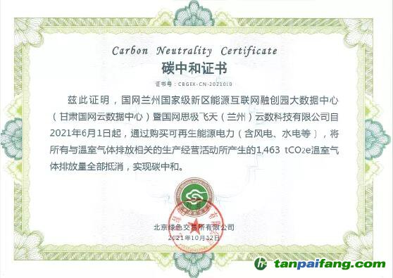 碳排放量全部抵消,標(biāo)志著甘肅國網(wǎng)云數(shù)據(jù)中心能耗實現(xiàn)100%可再生能源,成為西北區(qū)域及國家電網(wǎng)有限公司首個通過