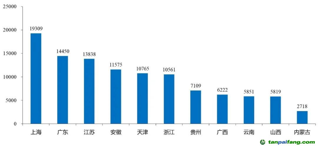 圖3 中國部分省份每噸碳排放所對(duì)應(yīng)的工業(yè)增加值,元/噸 本%文$內(nèi)-容-來-自;中_國_碳|排 放_(tái)交-易^網(wǎng)^t an pa i fang . c om