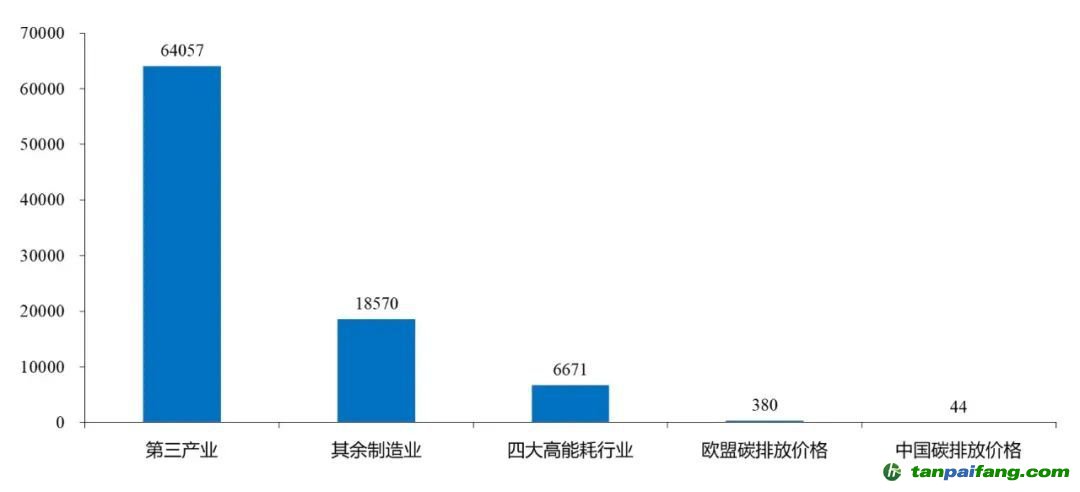 在我國的四大高耗能行業(yè)中,每一噸碳排放所能創(chuàng)造的增加值約為6671元;這一數(shù)字在其他制造業(yè)為18570元,在第三產(chǎn)業(yè)為64057元。其中,第三產(chǎn)業(yè)對(duì)電力需求的技術(shù)細(xì)節(jié)差異比較大,但高耗能行業(yè)和其他制造業(yè)則以電力為最重要的能量輸入渠道,對(duì)電力有著嚴(yán)重的依賴。