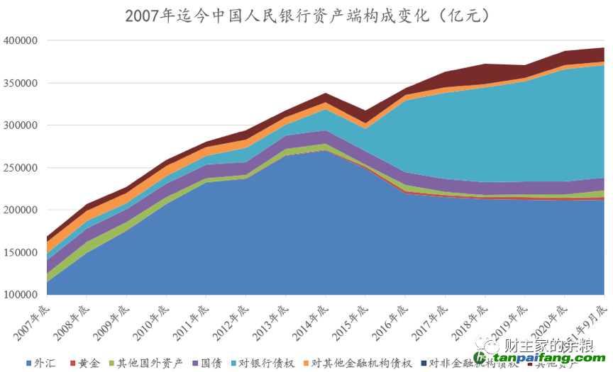 這個決定,意味著涉及綠色、三農(nóng)的垃圾債,也成為了人民幣基礎(chǔ)貨幣發(fā)行的來源。 再次放開再貸款和再貼現(xiàn)規(guī)模,同時屢次擴大抵押品范圍,讓中國的基礎(chǔ)貨幣發(fā)行渠道從80%以上的外匯,逐漸轉(zhuǎn)向國內(nèi)的各種貸款和債券,在央媽資產(chǎn)負債表上的體現(xiàn),就是“對銀行債權(quán)”的規(guī)模和占比,都持續(xù)擴大(見下圖)。 本+文`內(nèi)/容/來/自:中-國-碳-排-放-網(wǎng)-tan pai fang . com