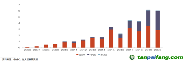 圖:2006-2020年全球海上風電新增裝機量 夲呅內(nèi)傛萊源?。骇鎲┨?排*放^鮫*易-網(wǎng) τā ńpāīfāńɡ.cōm