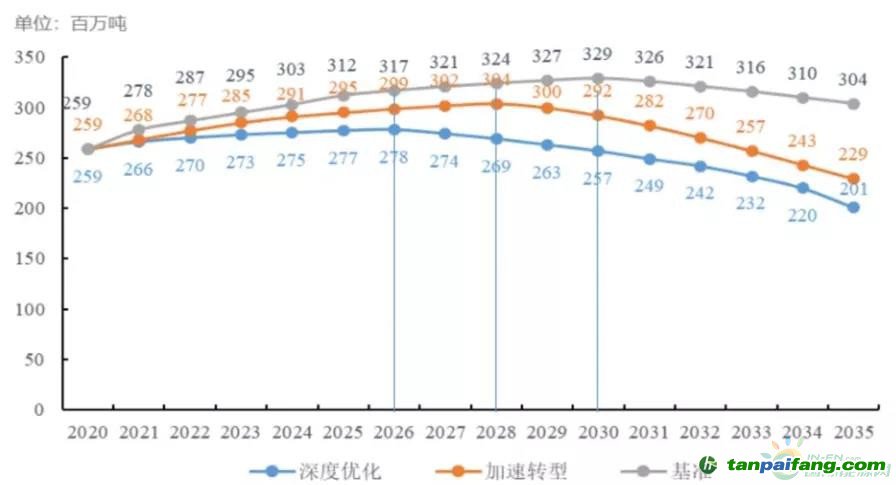 ◆在基礎(chǔ)情景下,全省與全國(guó)同步達(dá)峰,但能源行業(yè)、交通運(yùn)輸業(yè)要比全國(guó)晚1年達(dá)峰,制造業(yè)早1年達(dá)峰; 禸*嫆唻@洎:狆國(guó)湠棑倣茭昜蛧 τāńpāīfāńɡ.cōm