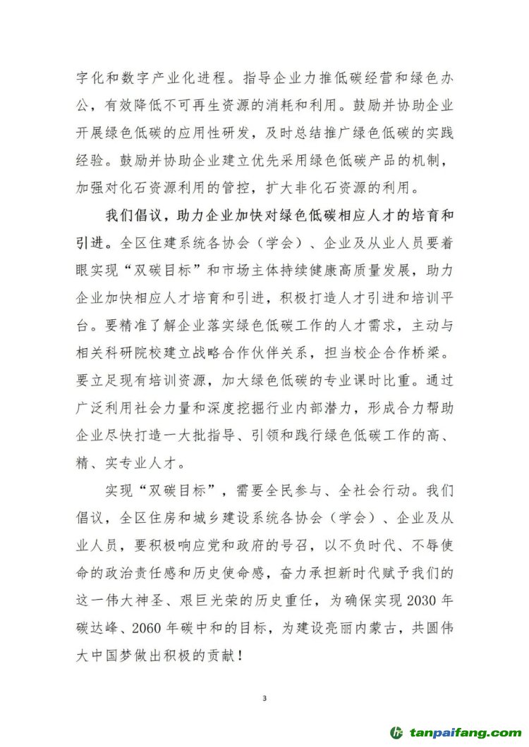 此次綠色低碳行動聯(lián)合倡議,由自治區(qū)住建廳指導(dǎo),內(nèi)蒙古自治區(qū)建筑業(yè)協(xié)會發(fā)起,面向全區(qū)建設(shè)系統(tǒng)各協(xié)會、學(xué)會、企業(yè)及從業(yè)人員。此次發(fā)起綠色低碳行動聯(lián)合倡議書,目的在于落實黨中央、國務(wù)院關(guān)于碳達(dá)峰、