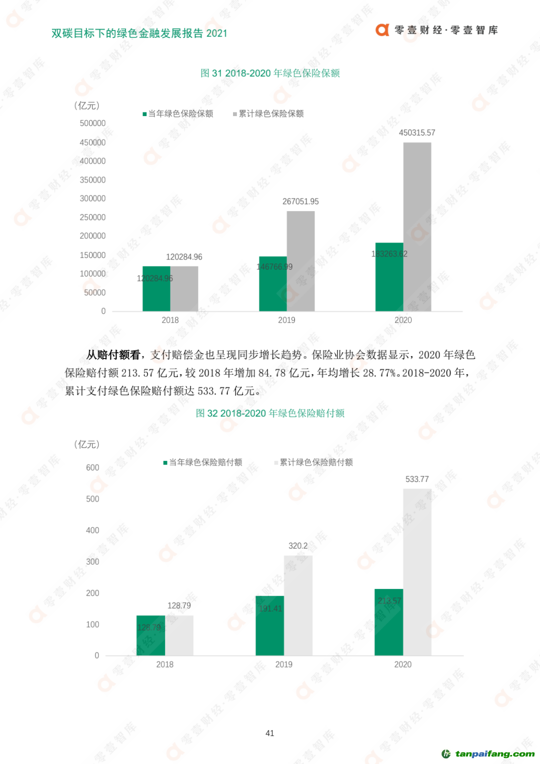 綠色保險規(guī)模持續(xù)增長。其中,2018-2020年中保額同比增長24.9%,賠付金額年均增長28.77%;綠色保險產(chǎn)品體系涵蓋了綠色保險產(chǎn)品、綠色保險服務(wù)及保險資金的綠色應(yīng)用,綠色保險產(chǎn)品體系初步建立,在綠色金融中發(fā)揮越來越重要作用。