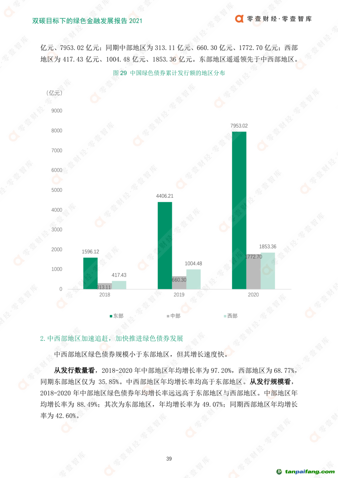 綠色債券是中國綠色金融發(fā)展的第二大載體。2020年,綠色債券累計發(fā)行規(guī)模已突破11000億元,累計發(fā)行數(shù)量達1097只。其中政府綠色債券規(guī)模持續(xù)擴張,非政府發(fā)行主體日趨多樣化;廣東綠色債券規(guī)模最大,全國發(fā)行省市較為集中;東部地區(qū)引領(lǐng)綠色債券發(fā)展,西部地區(qū)持續(xù)推進。 本`文-內(nèi).容.來.自:中`國^碳`排*放*交^易^網(wǎng) ta np ai fan g.com