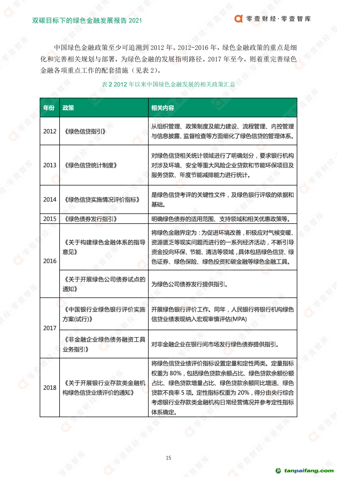 《雙碳目標下的綠色金融發(fā)展報告(2021)》報告分為綠色金融的背景和內(nèi)涵、主要經(jīng)濟體綠色金融的總體情況、中國綠色金融的整體情況、中國綠色金融的具體情況及展望五部分。