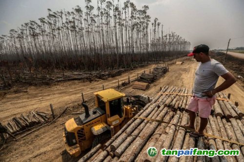 2019年8月25日,在位于巴西烏邁塔的亞馬孫雨林,一名男子望向被火災破壞的桉樹林。(新華社發(fā),加夫列拉攝) 本%文$內(nèi)-容-來-自;中_國_碳|排 放_交-易^網(wǎng)^t an pa i fang . c om