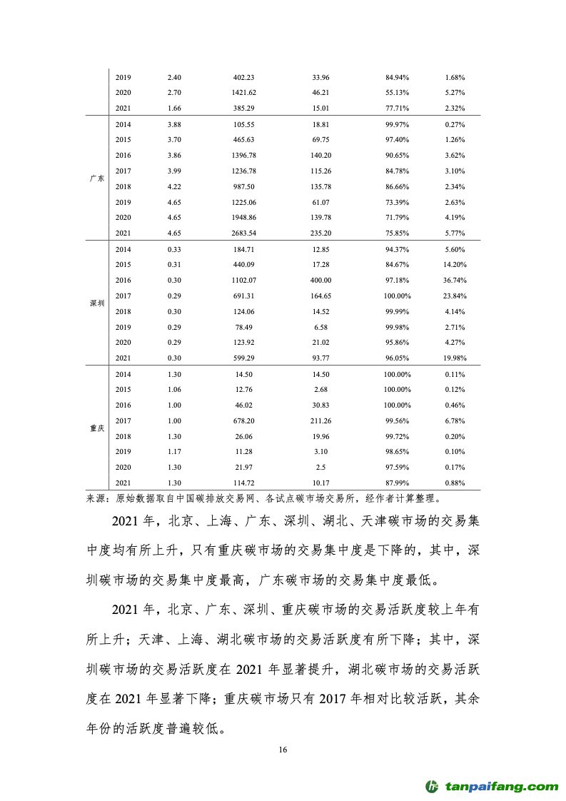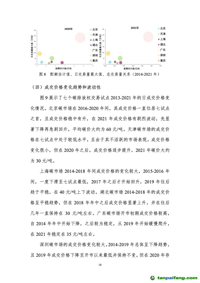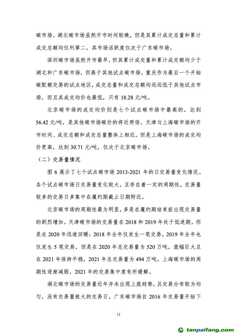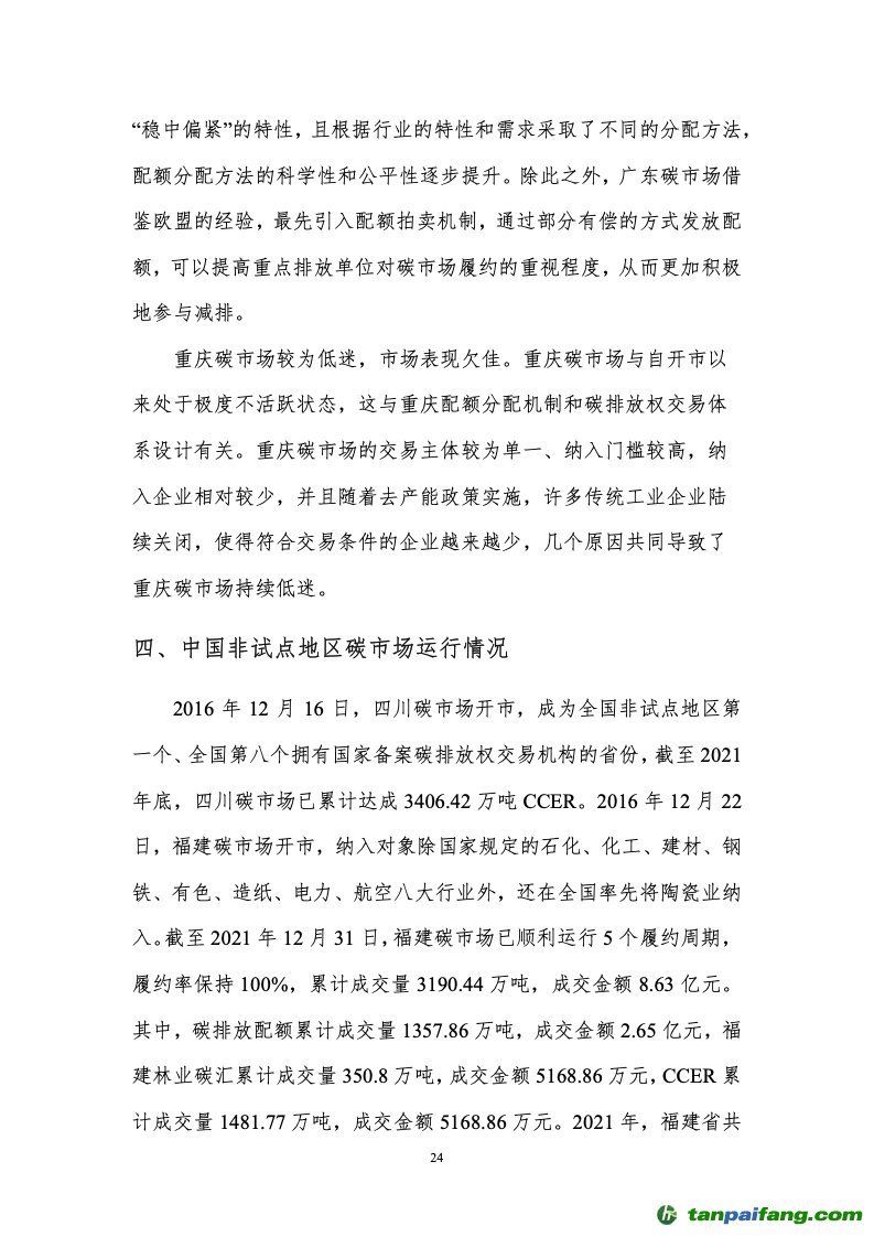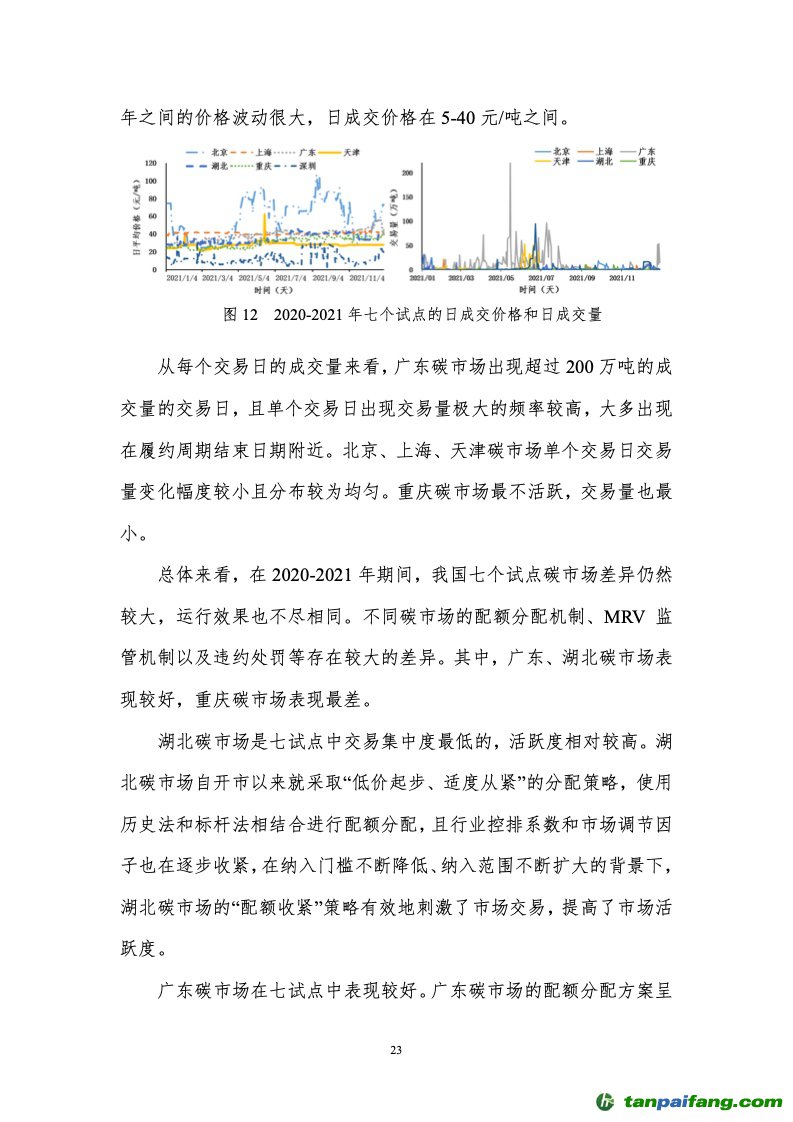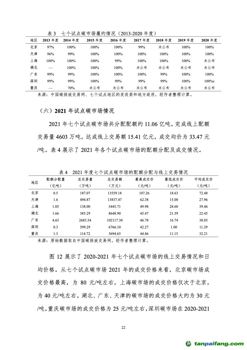 試點(diǎn)碳市場方面,《中國碳市場回顧與展望(2022)》指出,2020——2021年期間,七個試點(diǎn)碳市場運(yùn)行效果不盡相同。其中,廣東、湖北碳市場表現(xiàn)較好,重慶碳市場表現(xiàn)最差。這與重慶配額分配機(jī)制和碳排放權(quán)交易體系設(shè)計(jì)有關(guān),其交易主體較為單一、納入門檻較高,納入企業(yè)相對較少,且隨著去產(chǎn)能政策實(shí)施,許多傳統(tǒng)工業(yè)企業(yè)陸續(xù)關(guān)閉,使得符合交易條件的企業(yè)越來越少。當(dāng)前,不同碳市場的配額分配機(jī)制、MRV(碳排放的量化與數(shù)據(jù)質(zhì)量保證過程)監(jiān)管機(jī)制以及違約處罰等仍存在較大差異。 本`文-內(nèi).容.來.自:中`國^碳`排*放*交^易^網(wǎng) ta np ai fan g.com
