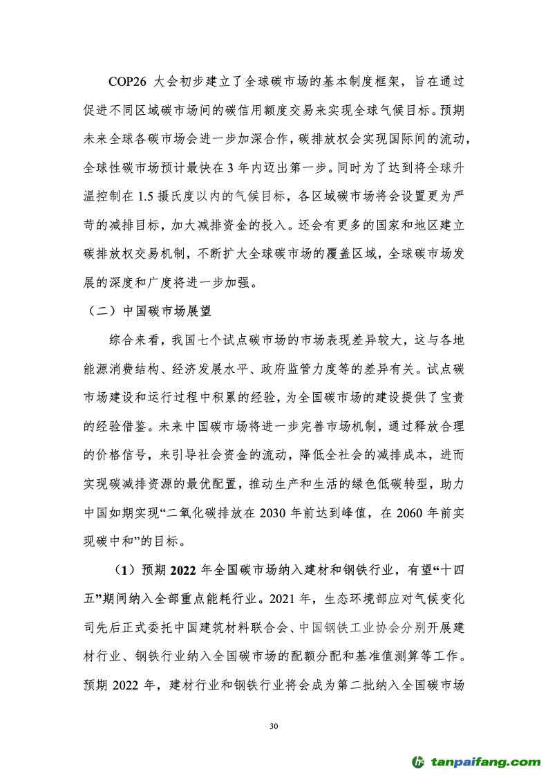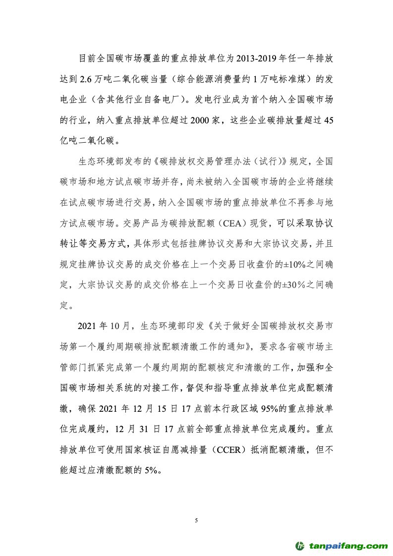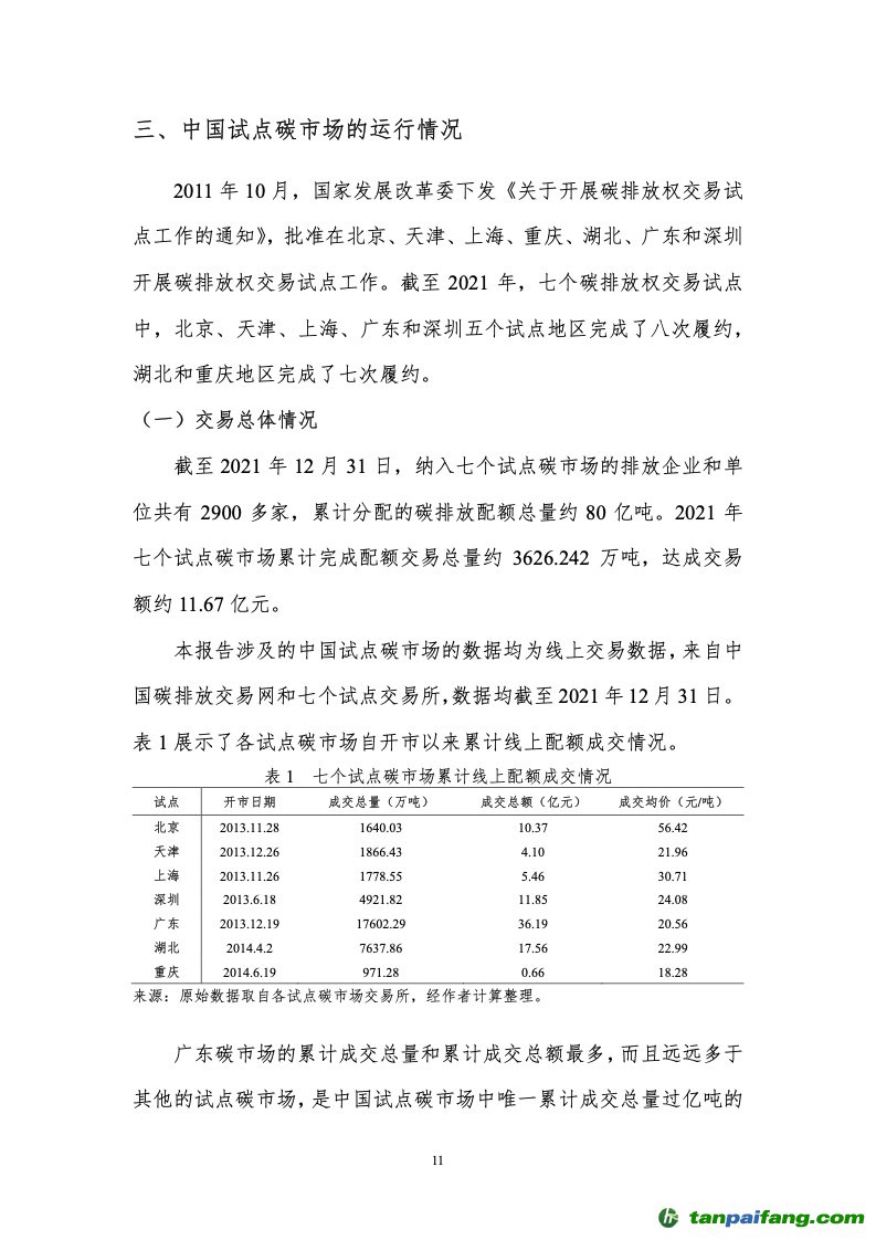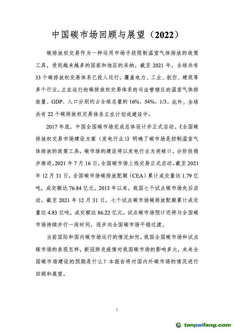 《中國碳市場回顧與展望(2022)》指出,目前全國碳市場整體運(yùn)行平穩(wěn),截至2021年年底,全國碳市場碳排放配額(CEA)累計(jì)成交量達(dá)1.79億噸,成交額達(dá)76.84億元。北京、天津、上海、重慶等七個試點(diǎn)碳市場碳排放配額累計(jì)成交量達(dá)4.83億噸,成交額達(dá)86.22億元。試點(diǎn)碳市場預(yù)計(jì)還將與全國碳市場持續(xù)并行一段時間,逐步向全國碳市場平穩(wěn)過渡。 本`文內(nèi).容.來.自:中`國`碳`排*放*交*易^網(wǎng) t a npai fan g.com
