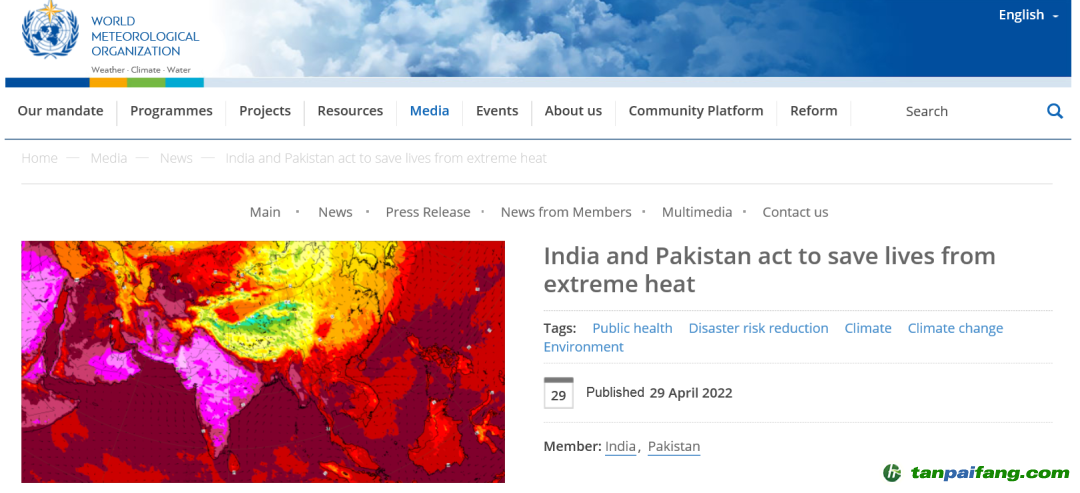4月29日,世界氣象組織發(fā)文稱,酷熱正席卷印度和巴基斯坦的大部分地區(qū),影響著這個(gè)世界上人口最稠密地區(qū)之一的數(shù)億人。 本+文+內(nèi).容.來.自:中`國`碳`排*放*交*易^網(wǎng) t a np ai fan g.com