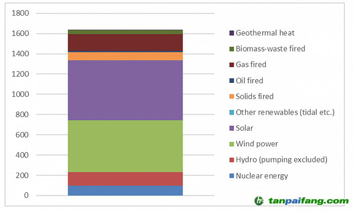 這意味著歐盟可再生能源裝機有望從目前的511 GW增加到2030年的1236 GW。