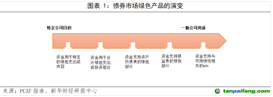 TCFD框架包括了向低碳經(jīng)濟轉(zhuǎn)型相關的商業(yè)機遇相關的披露。根據(jù)該框架,機遇分為資源效率、能源、產(chǎn)品和服務、市場和彈性。對于金融機構(gòu)而言,每一類都存在重大機遇,特別是與可持續(xù)金融產(chǎn)品有關的機遇。如下圖所示,債券等可持續(xù)金融產(chǎn)品已從用于資助特定公司目的的綠色債券(如符合綠色條件的項目,如風電場)發(fā)展為僅專注于一般公司可持續(xù)性目的的債券,例如與可持續(xù)性相關的債券(即發(fā)行人的全部業(yè)務致力于實現(xiàn)可持續(xù)目標,這意味著該債券與業(yè)務的可持續(xù)轉(zhuǎn)型相關)。