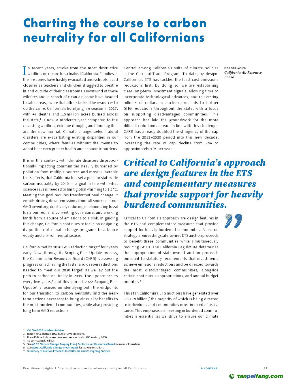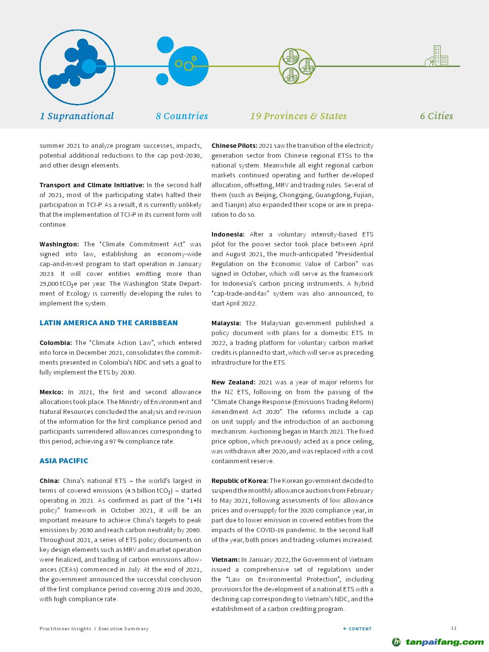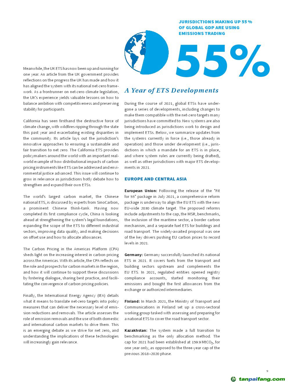 2021年對于世界各地的 ETS 來說是至關(guān)重要的一年,因為各司法管轄區(qū)正在采取措施履行其凈零排放承諾。截至2022年,全球有25個系統(tǒng)正在生效,另有22個計劃實施或正在考慮中。國內(nèi)碳市場目前約占全球排放量的17%,并產(chǎn)生了超過1610億美元的拍賣收入,可用于進一步的環(huán)境保護措施和氣候正義。 夲呅內(nèi)傛萊源?。骇鎲┨?排*放^鮫*易-網(wǎng) τā ńpāīfāńɡ.cōm