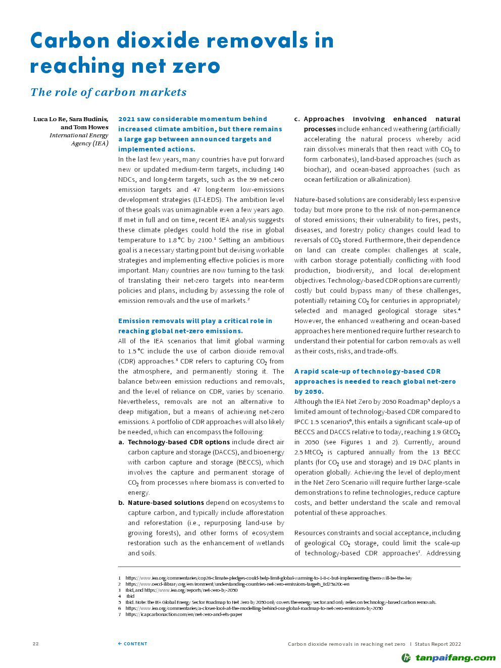 排放交易系統(tǒng)(ETS)在本世紀(jì)的挑戰(zhàn)中發(fā)揮著關(guān)鍵作用:到2050年實現(xiàn)凈零排放。政府的凈零承諾涵蓋了全球溫室氣體排放的大約70%,但許多沒有得到近期政策的支持。實現(xiàn)這一長期目標(biāo)需要加強現(xiàn)有的排放交易體系。它們正日益成為推動脫碳的首選政策工具,并將在實現(xiàn)凈零排放方面發(fā)揮核心作用。 本/文-內(nèi)/容/來/自:中-國-碳-排-放-網(wǎng)-tan pai fang . com