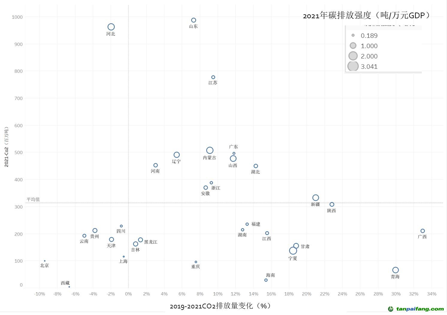(2021年各地碳排放情況對比)