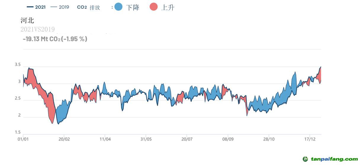 (2021年與2019年相比河北二氧化碳全年排放變化情況)