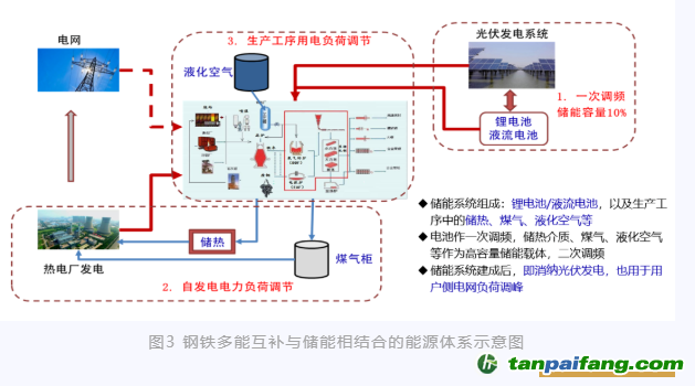 圖3鋼鐵多能互補與儲能相結(jié)合的能源體系示意圖