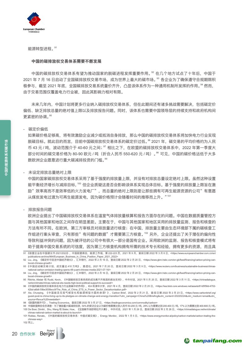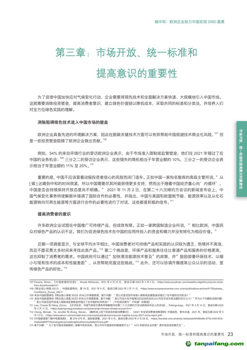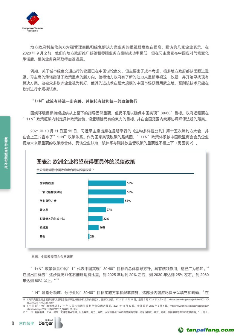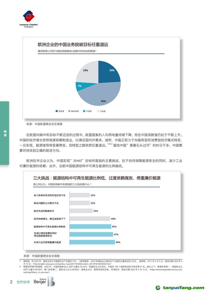 報告顯示,超過75%的在華歐洲企業(yè)認為中國能夠?qū)崿F(xiàn)2030年碳中和、2060年碳達峰的目標。60%的受訪企業(yè)認為中國的脫碳目標是激進的,但報告認為設(shè)立激進目標確有必要。 本`文@內(nèi)-容-來-自;中_國_碳排0放_交-易=網(wǎng) t an pa ifa ng . c om