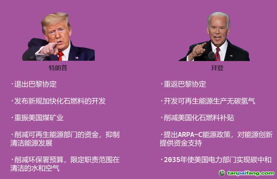 美國是 " 反復(fù)橫跳派 " 代表。一朝天子一朝臣的特色下,在國際上:反復(fù) " 退群 " 氣候協(xié)定。在其國內(nèi):利好新能源的政策和利好化石能源的政策頻繁 " 兩極反轉(zhuǎn) ",地區(qū)和企業(yè)之間互相拉幫結(jié)派,整個能源產(chǎn)業(yè)難以協(xié)同作戰(zhàn)。 禸*嫆唻@洎:狆國湠棑倣茭昜蛧 τāńpāīfāńɡ.cōm