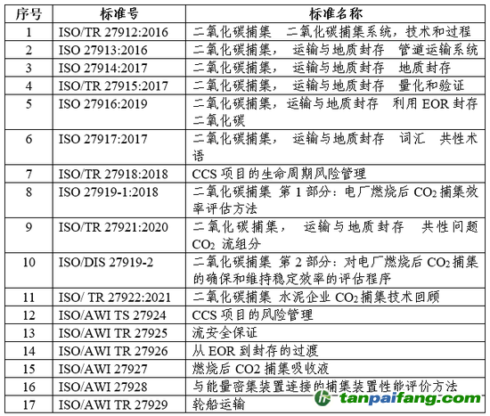 2. ISO/TC265的工作范圍包括:關(guān)于碳捕集與封存(CCS)領(lǐng)域相關(guān)活動(dòng)的物質(zhì)、設(shè)備、環(huán)境規(guī)劃與管理、風(fēng)險(xiǎn)管理、量化與驗(yàn)證等方面的標(biāo)準(zhǔn)制定。ISO/TC265已發(fā)布和正在制定的標(biāo)準(zhǔn),如表2所示。 本`文@內(nèi)-容-來(lái)-自;中_國(guó)_碳排0放_(tái)交-易=網(wǎng) t an pa ifa ng . c om