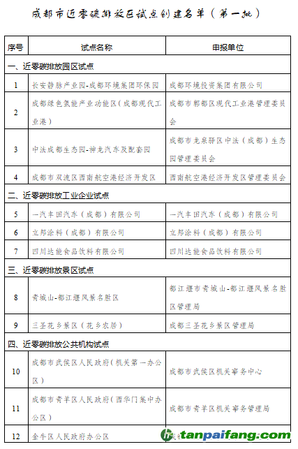 試點第一批創(chuàng)建單位,這標志著成都市近零