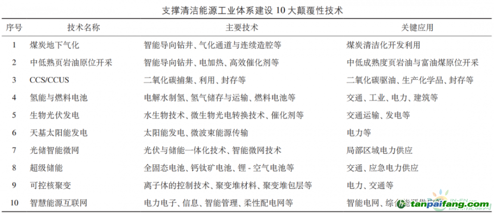 當(dāng)前,可著力布局研究 10 大顛覆性技術(shù),通過加快科技創(chuàng)新,有效助力清潔能源工業(yè)體系建設(shè)。 本文@內(nèi)/容/來/自:中-國-碳^排-放-交易&*網(wǎng)-tan pai fang . com