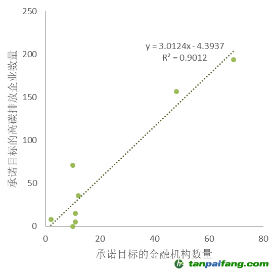 承諾目標(biāo)金融機(jī)構(gòu)和高碳排企業(yè)數(shù)量相關(guān)性