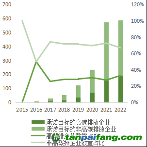 企業(yè)承諾科學(xué)碳目標(biāo)逐年變化情況(分碳排放量) 內(nèi)/容/來/自:中-國/碳-排*放^交%易#網(wǎng)-tan p a i fang . com