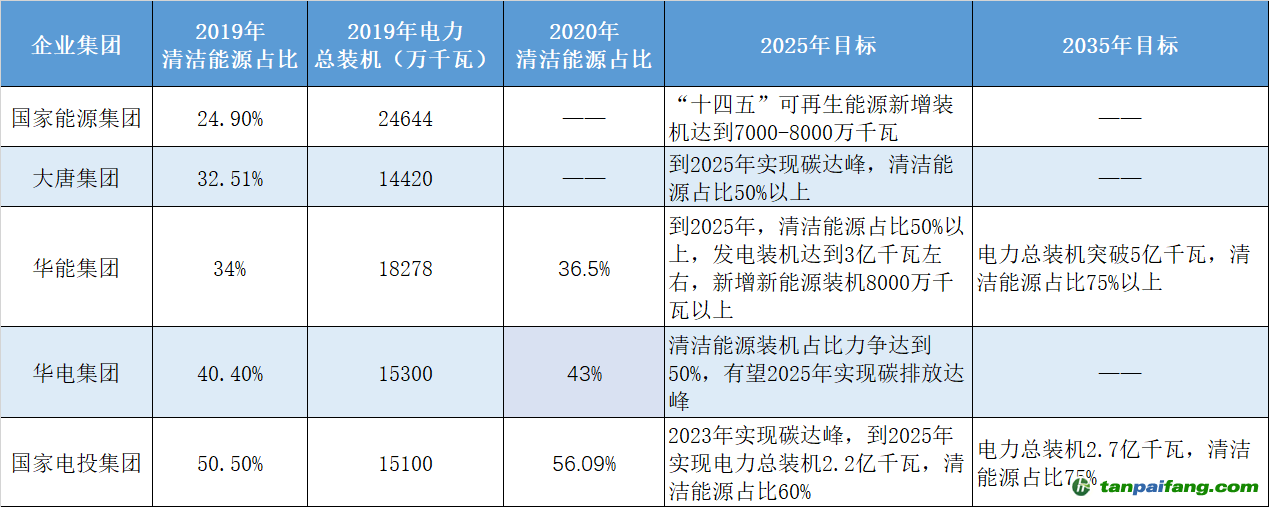 華能集團目標最為宏大,計劃由2020年的36.5%提高到2025年50%以上,五年時間至少需要提高13.5個百分點,且華能集團目前裝機已經(jīng)接近2億千瓦。 夲呅內(nèi)傛萊源?。骇鎲┨?排*放^鮫*易-網(wǎng) τā ńpāīfāńɡ.cōm