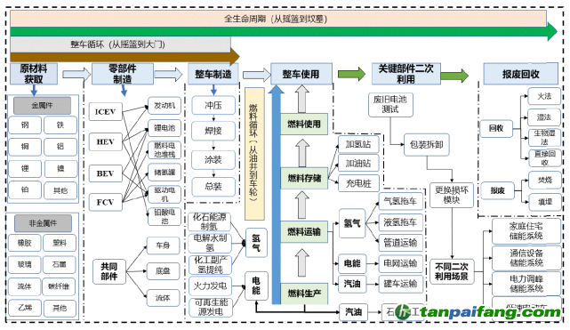 在這種評(píng)估思路下,汽車原材料的獲取、制造裝配、運(yùn)行使用、關(guān)鍵部件二次利用直至報(bào)廢回收過(guò)程中所產(chǎn)生的碳排放都應(yīng)該考慮在內(nèi)。