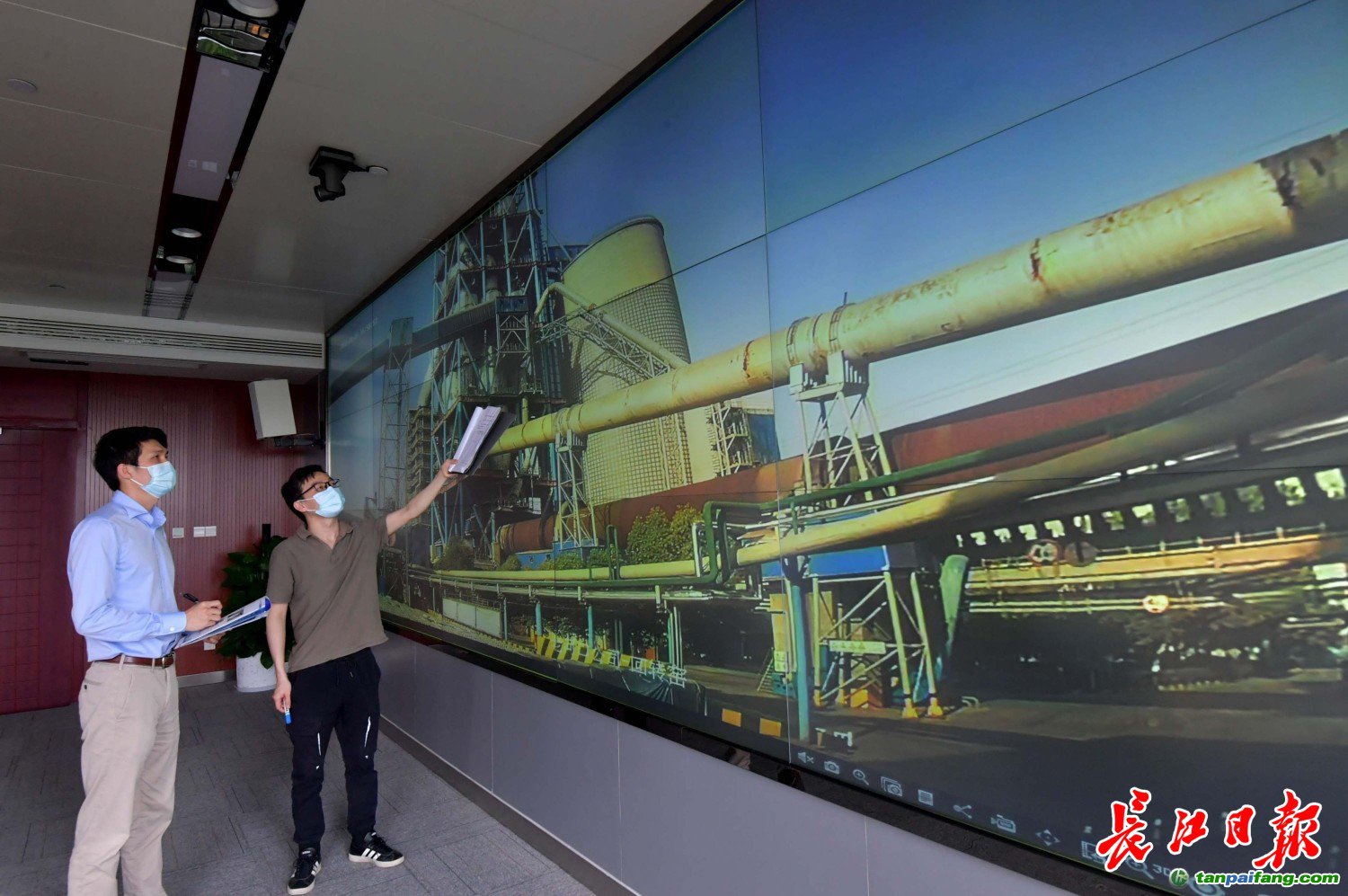 葛洲壩水泥集團有限公司生產(chǎn)指揮中心,通過大屏幕,“碳市操盤手”夏楓(右)講解企業(yè)生產(chǎn)設(shè)備及各種生產(chǎn)實時數(shù)據(jù)。長江日報記者 劉斌 攝 本`文@內(nèi)-容-來-自;中^國_碳0排0放^交-易=網(wǎng) ta n pa i fa ng . co m
