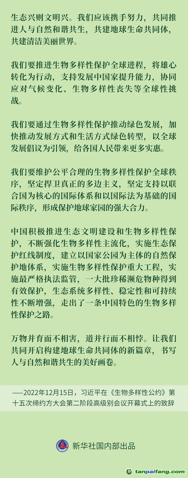 2022年12月,在《生物多樣性公約》第十五次締約方大會第二階段高級別會議開幕式上,習近平主席以視頻方式致辭。 本+文`內(nèi).容.來.自:中`國`碳`排*放*交*易^網(wǎng) t a np ai fan g.com