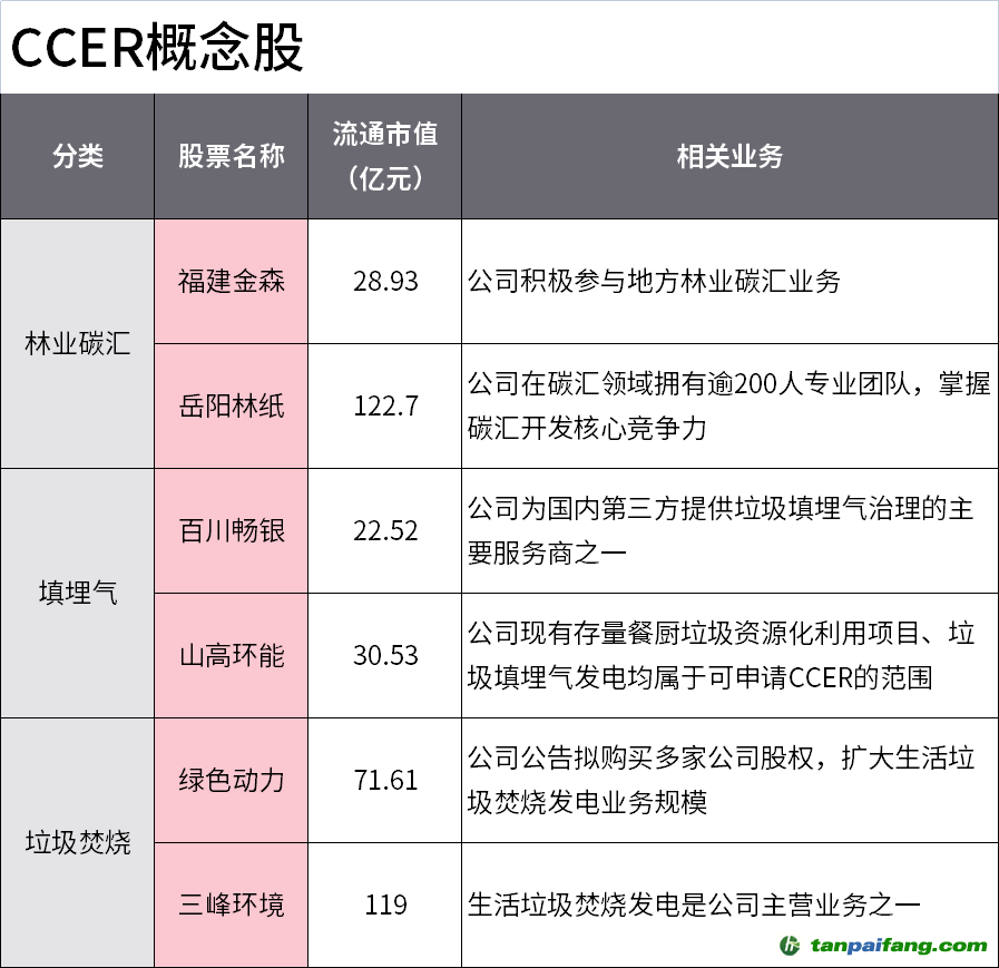 中信證券預計,如果CCER重啟,企業(yè)將可以通過交易CCER實現(xiàn)額外收益,有望利好新能源產(chǎn)業(yè)。在目前審定的2871個項目中,包括風力發(fā)電、太陽能發(fā)電、垃圾焚燒發(fā)電和垃圾填埋發(fā)電的企業(yè)占比高達69%,CCER的重啟將使得這類可再生能源發(fā)電企業(yè)可以通過將“二氧化碳減排量”變現(xiàn)來增厚自身收益。 本%文$內(nèi)-容-來-自;中_國_碳|排 放_交-易^網(wǎng)^t an pa i fang . c om