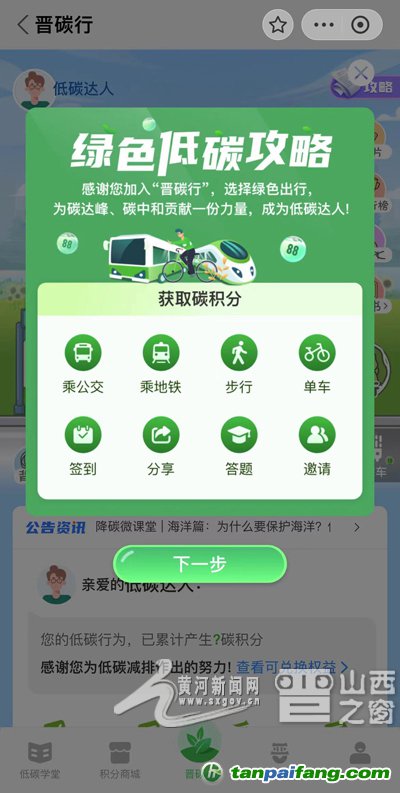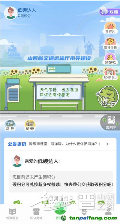 據(jù)了解,“晉碳行”是山西省交通運(yùn)輸廳與支付寶共同開發(fā)的全國(guó)第一個(gè)基于綠色出行數(shù)據(jù)的省級(jí)碳普惠平臺(tái),該平臺(tái)可為用戶提供個(gè)人碳賬戶、低碳講堂、綠色公益、點(diǎn)亮山西、低碳達(dá)人、碳益家等功能模塊,以及便捷乘車、乘車賬單等服務(wù),旨在引導(dǎo)廣大群眾樹立“能走不騎、能騎不坐、能坐不開”的出行理念,主動(dòng)選擇綠色出行。