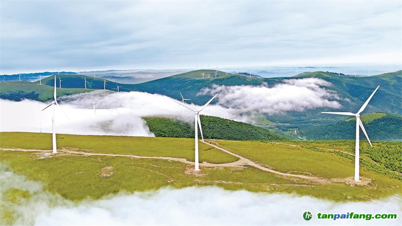 豐寧滿族自治縣大灘鎮(zhèn)的風(fēng)力發(fā)電機組形成的風(fēng)車群在壩上草原運轉(zhuǎn)。(河北日報資料片) 河北日報記者田明攝