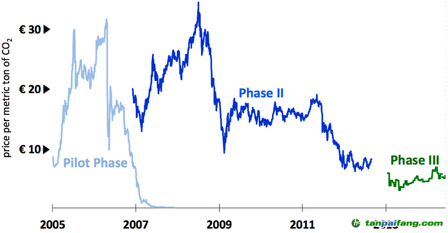 是為期三年的試點階段,主要為《京都議定書》積累經(jīng)驗、奠定基礎(chǔ)。該階段所限制的溫室氣體減排許可交易僅涉及CO2,行業(yè)覆蓋電力及能源密集型工業(yè),并設(shè)置了被納入體系的企業(yè)的門檻。在此期間,幾乎所有的補貼都免費發(fā)放給企業(yè)。對超配額排放的企業(yè)罰款每噸40歐元。 本+文+內(nèi)/容/來/自:中-國-碳-排-放(交—易^網(wǎng)-tan pai fang . com