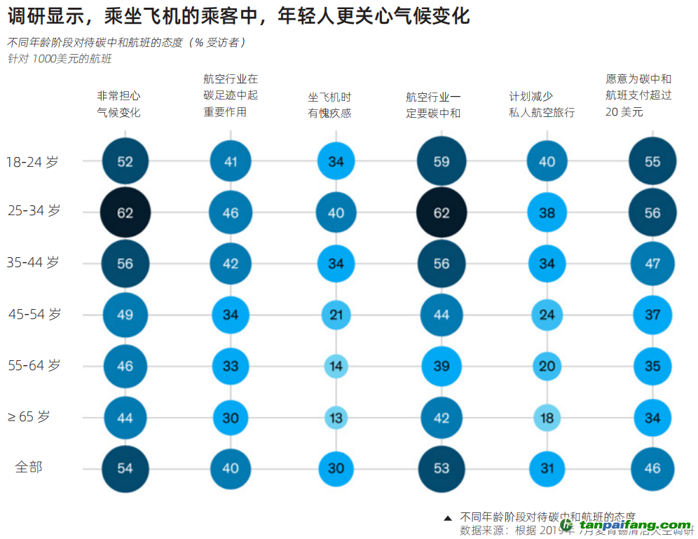 圖2:不同年齡階段對碳中和航班的態(tài)度 本@文$內(nèi).容.來.自:中`國`碳`排*放^交*易^網(wǎng) t a np ai fan g.c om