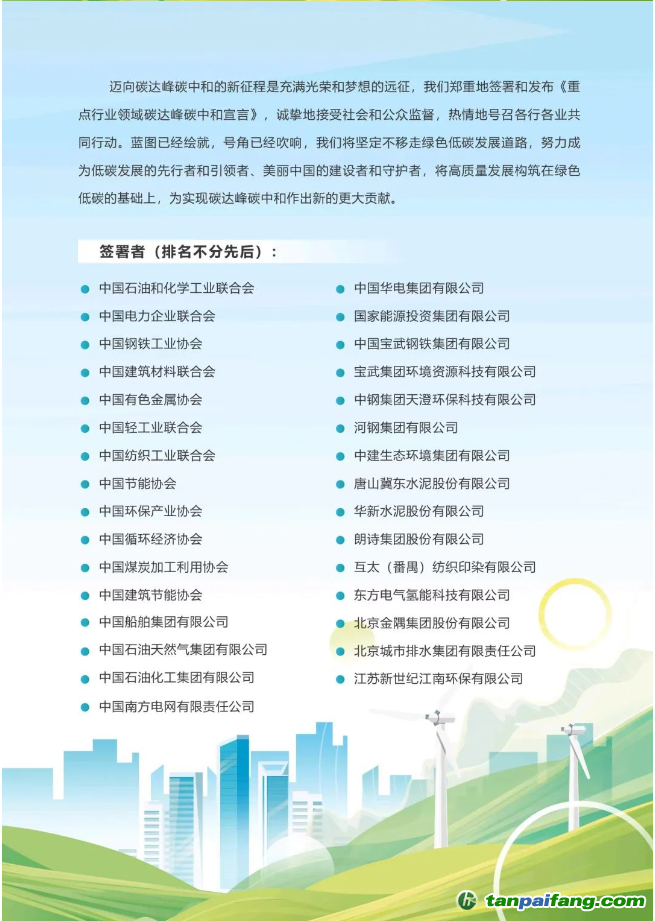 《重點(diǎn)行業(yè)領(lǐng)域碳達(dá)峰碳中和宣言》全文如下