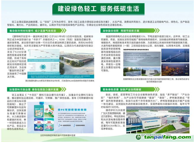 輕工業(yè)作為服務(wù)人民美好生活的重要行業(yè),以工業(yè)和消費(fèi)領(lǐng)域降碳為使命,以“雙碳”工作為總牽引,發(fā)布《輕工業(yè)重點(diǎn)領(lǐng)域碳達(dá)峰實(shí)施方案》,從生產(chǎn)端、消費(fèi)端共同發(fā)力,逐步推進(jìn)工業(yè)用能電氣化、綠色化,生產(chǎn)制造智能化、集約化,產(chǎn)品低碳化、循環(huán)化,以高水平的低碳供給,引領(lǐng)全社會(huì)綠色低碳生活理念形成。