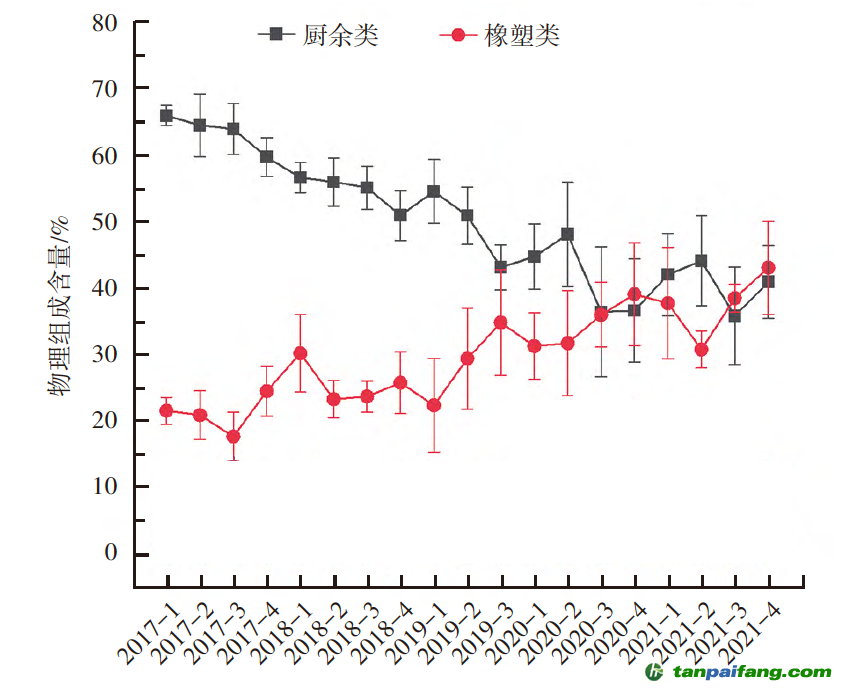 隨著濕垃圾的分出,垃圾焚燒廠入廠垃圾中塑料、橡膠、紡織物等干垃圾的比重隨之不斷提高,并開始逐步占據(jù)主導(dǎo)。詳見圖2。 本*文@內(nèi)-容-來(lái)-自;中_國(guó)_碳^排-放*交-易^網(wǎng) t an pa i fa ng . c om